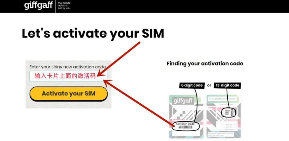 打开Giffgaff激活地址:https://www.giffgaff.com/activate